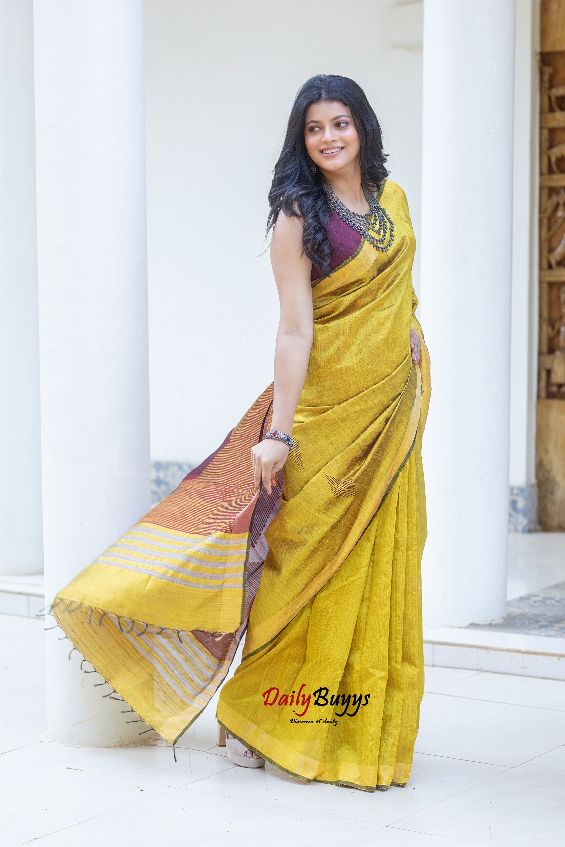 Mustard Handwoven Dupion Silk Sarees
