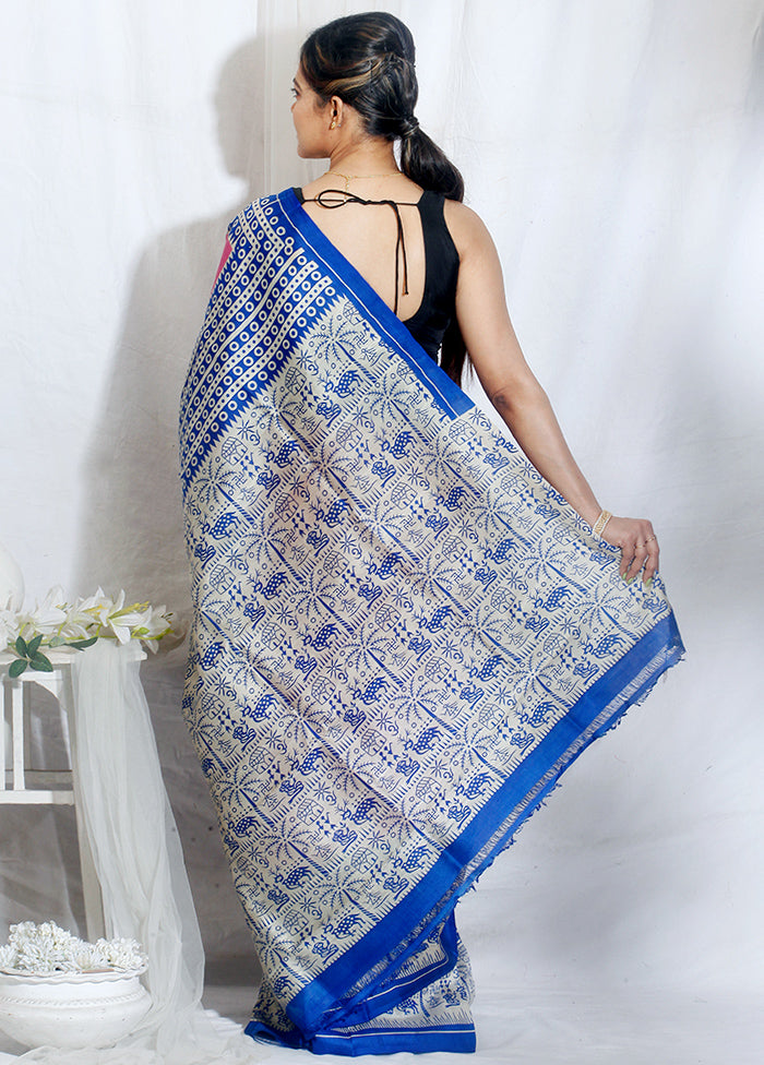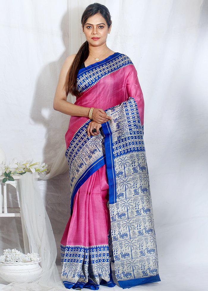 Pink Block Print Silk Mark Certified Bishnupuri Silk Sarees