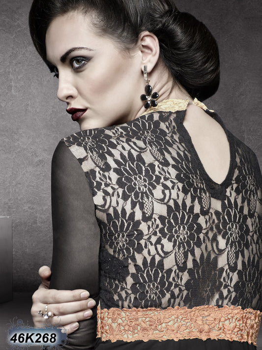 Black Georgette & Jacquard Net Kurtis