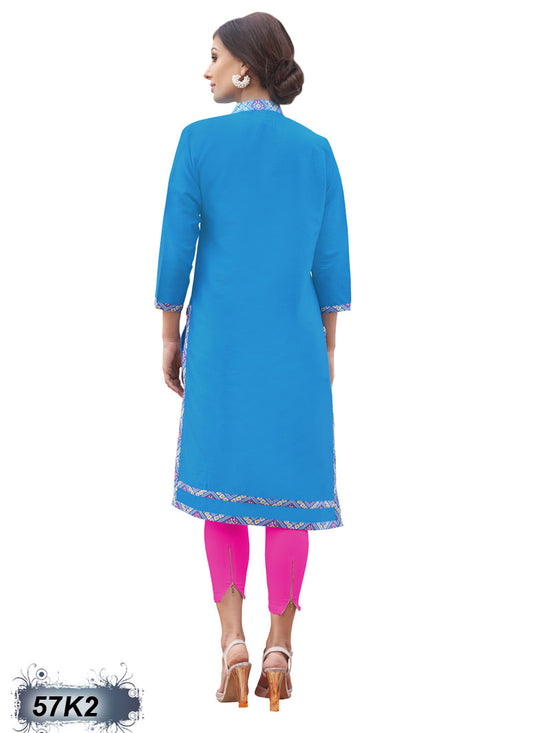 Blue Cream Digital Printed Stitched Rayon Kurtis