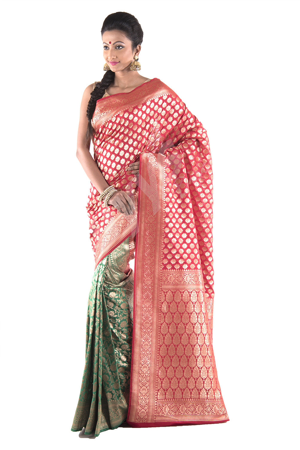 A Banarasi saree is a saree made in Varanasi, a city which is also called Benares or Banaras. The sarees are among the finest sarees inIndia and are known for their gold and silver brocade or zari, fine silk and opulent embroidery. The sarees are made of finely woven silkand are decorated with intricate design, and, because of these engravings, are relatively heavy.