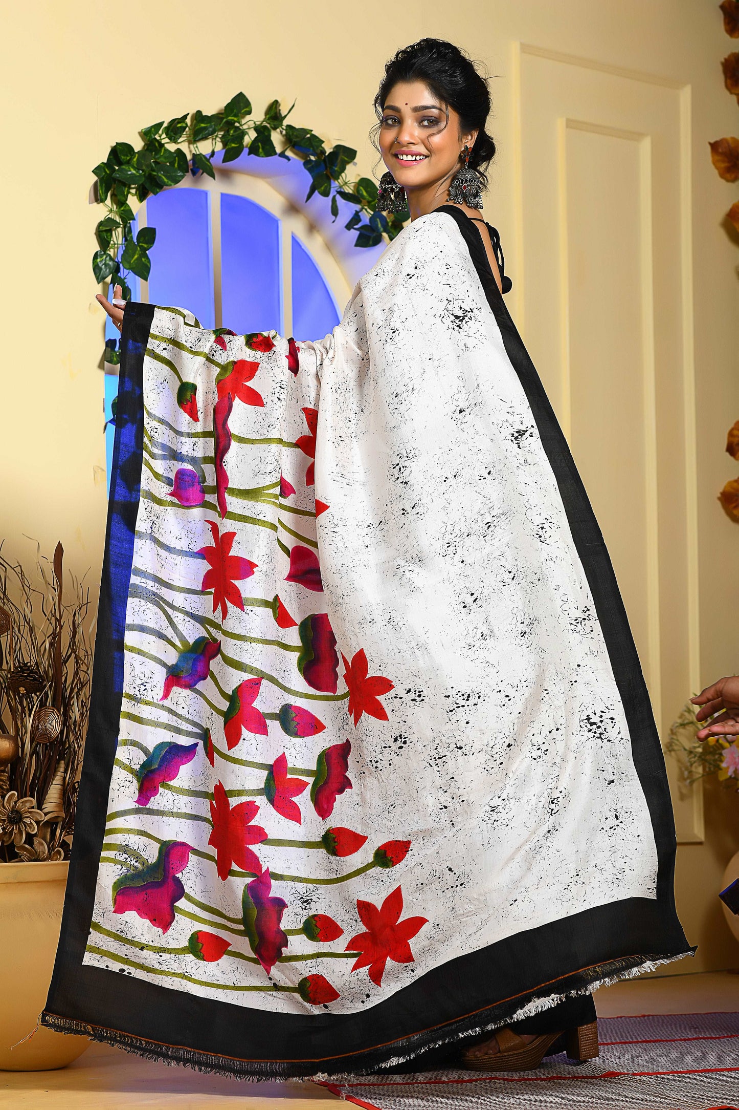 Beautiful Floral Hand Painted Silk Mark Certified Pure Bishnupuri Silk Sarees