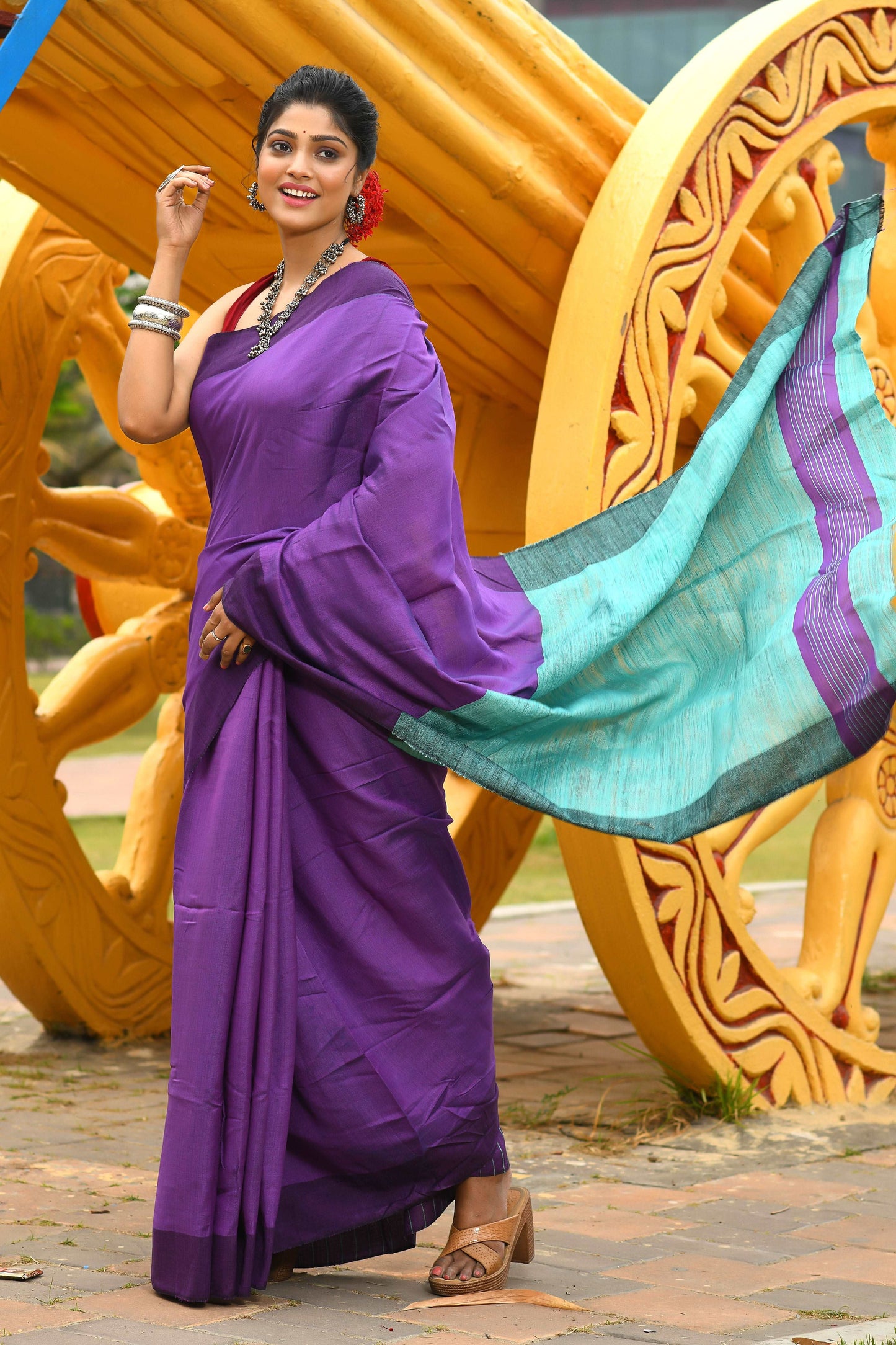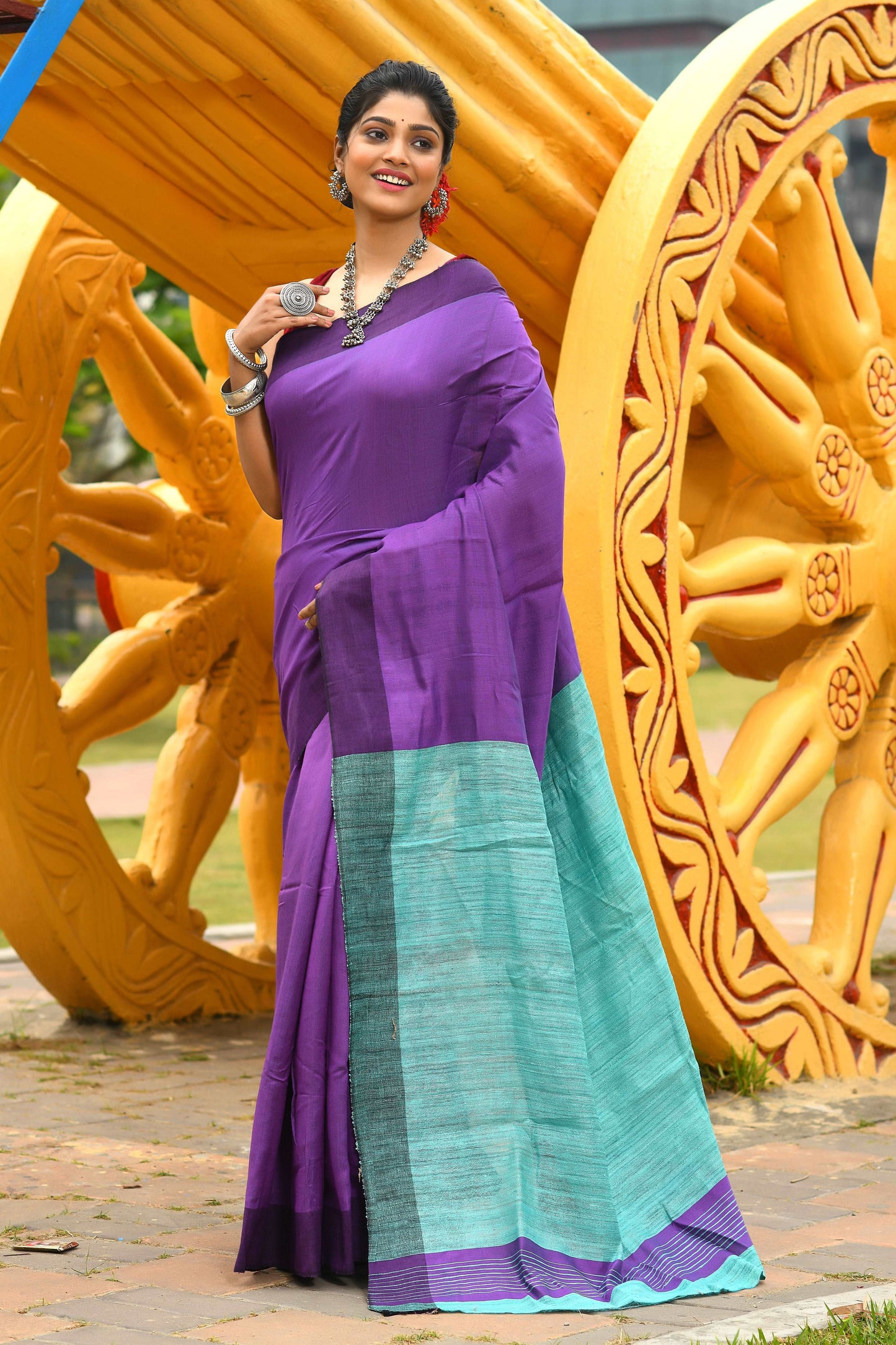 Description: Pure Handloom Zari Border Tussar Silk Saree (Silk Mark Certified)
