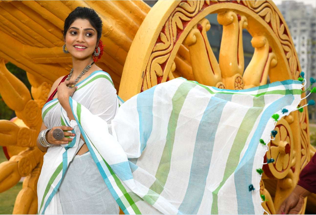 Product Type: Designer Handloom Beautiful White Handloom Cotton Sarees- cotton Saree with Blouse Piece.