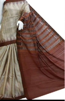 Beige & Chocolate Sambalpuri Pure Silk Mark Certified Tussar Ghicha Silk Sarees