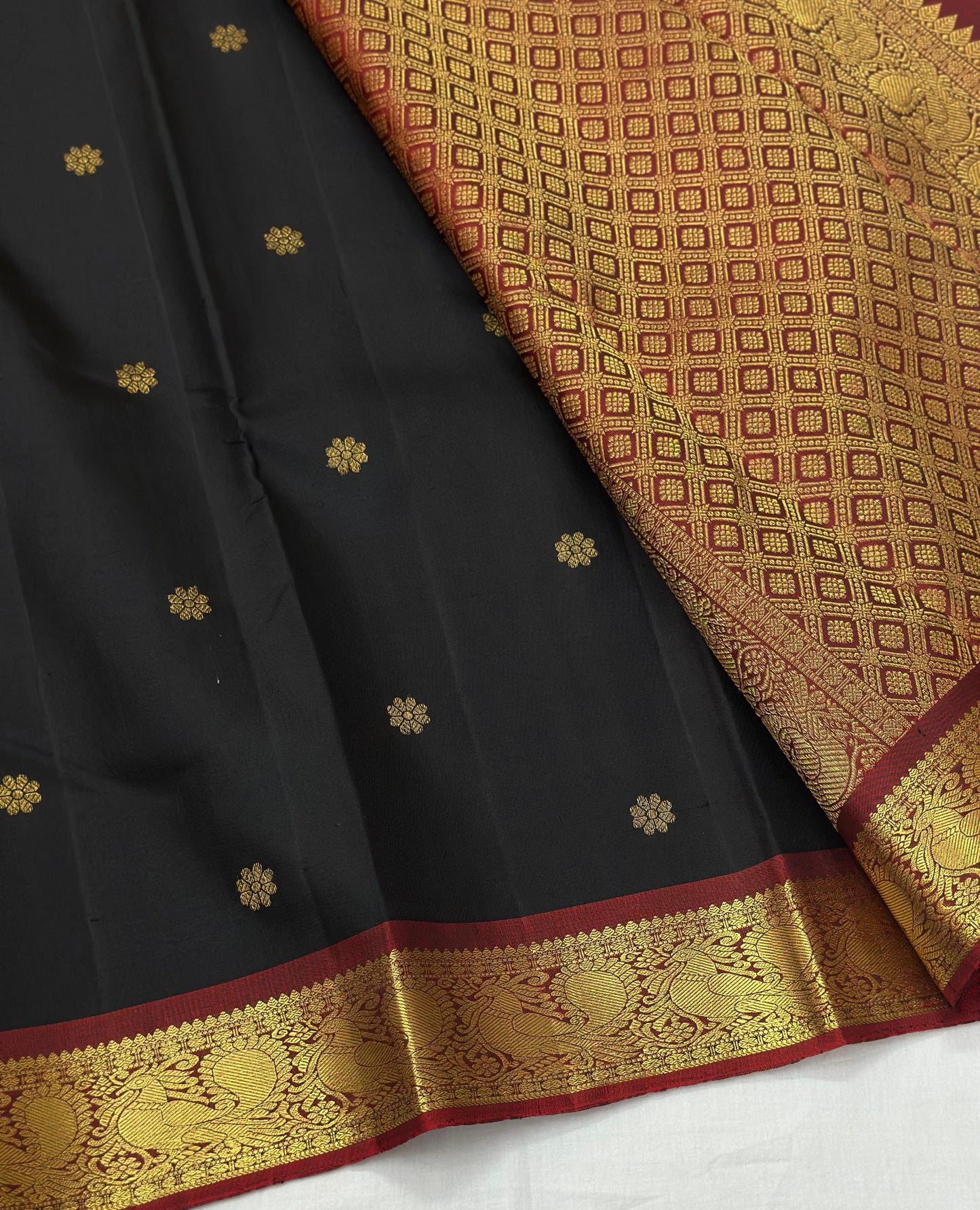 Black Green Pure Handloom bridal Kanjivaram Silk Sarees
