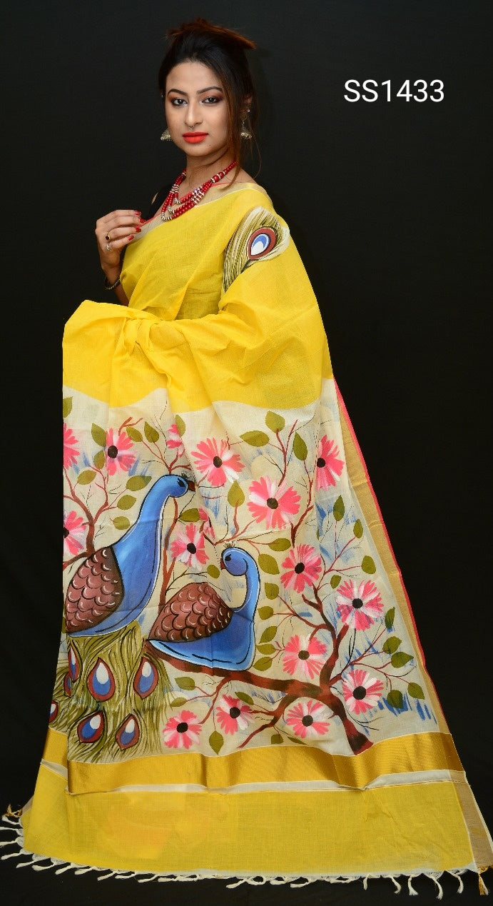 Description: Pure Kerala Cotton Paint Sarees (Cotton Certified)