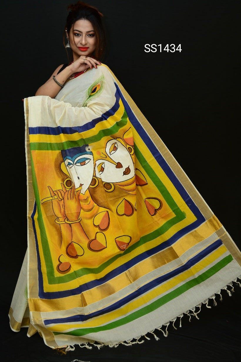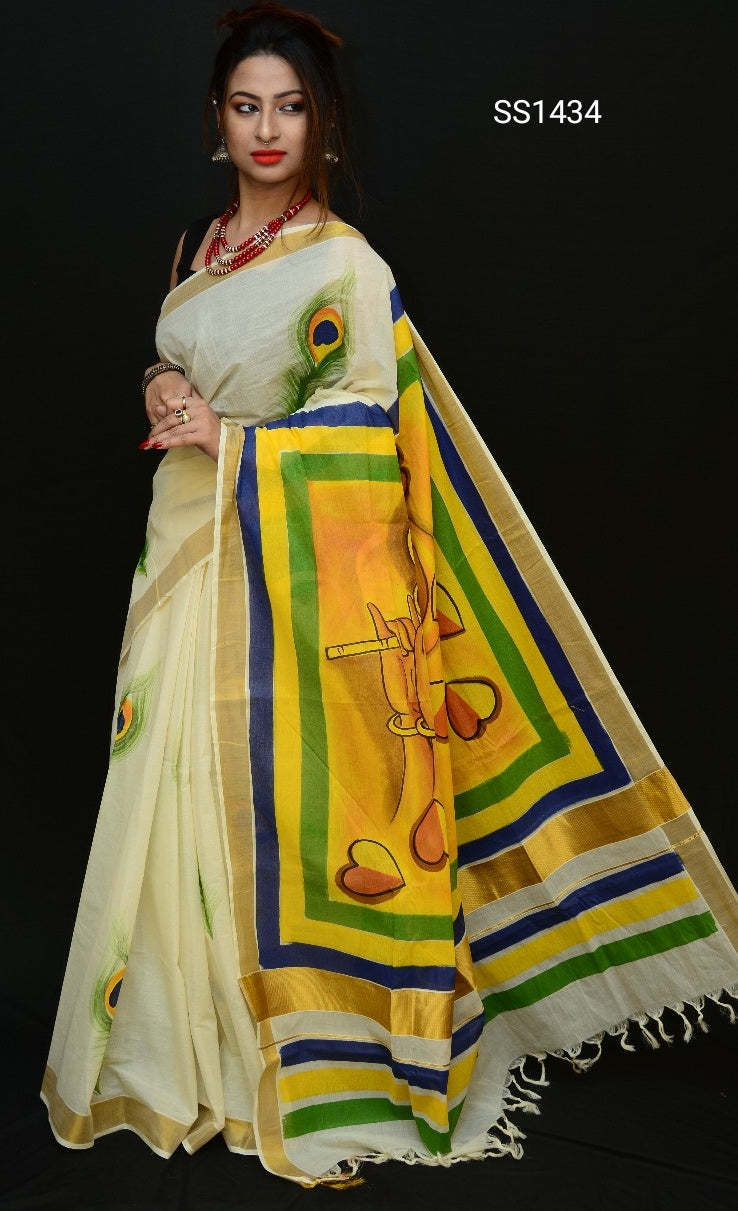 Description: Pure Kerala Cotton Paint Sarees (Cotton Certified)
