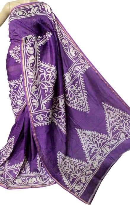 Violet Wax Batik Hand Painted Pure Silk Mark Certified Bishnupuri Silk Sarees