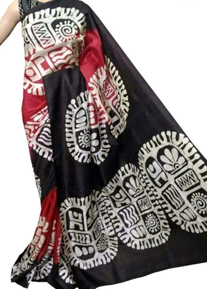 Black Wax Batik Hand Painted Pure Silk Mark Certified Bishnupuri Silk Sarees