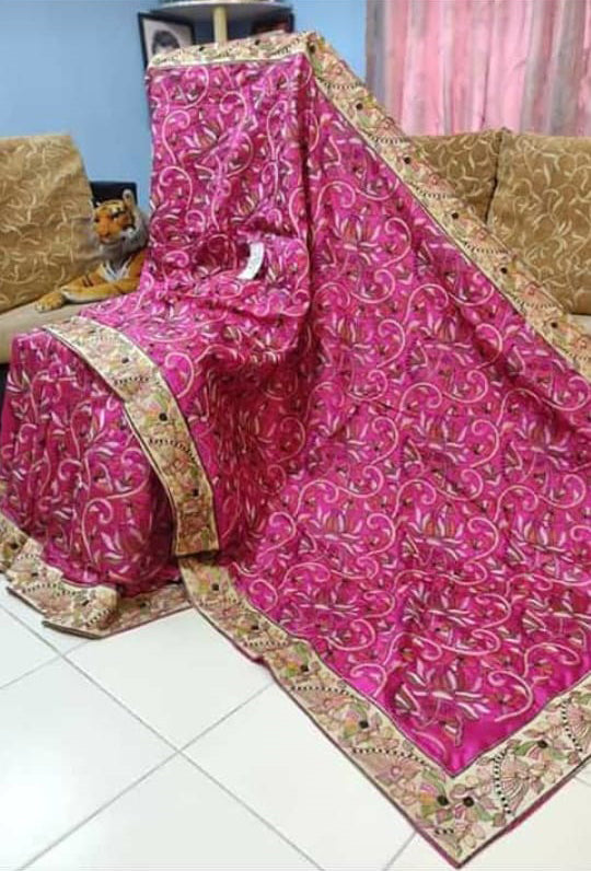 Violet Kantha Stitch Design Dupion Silk Sarees