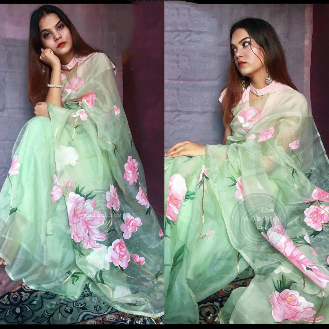 Pure Silkweave Organza Saree With Beautiful Digital Print  all over Saree♥️