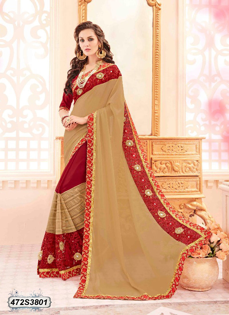 Maroon,Beige Georgette Sarees