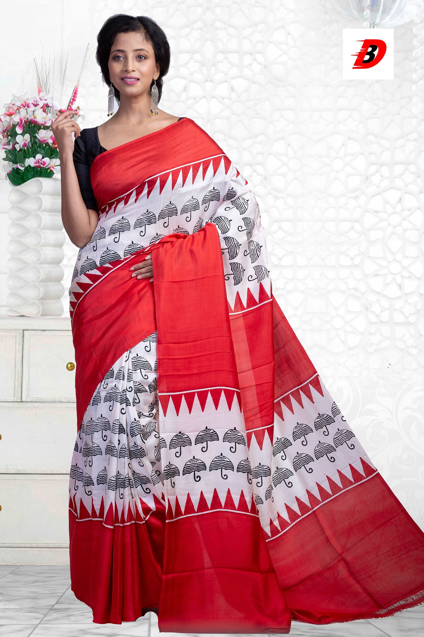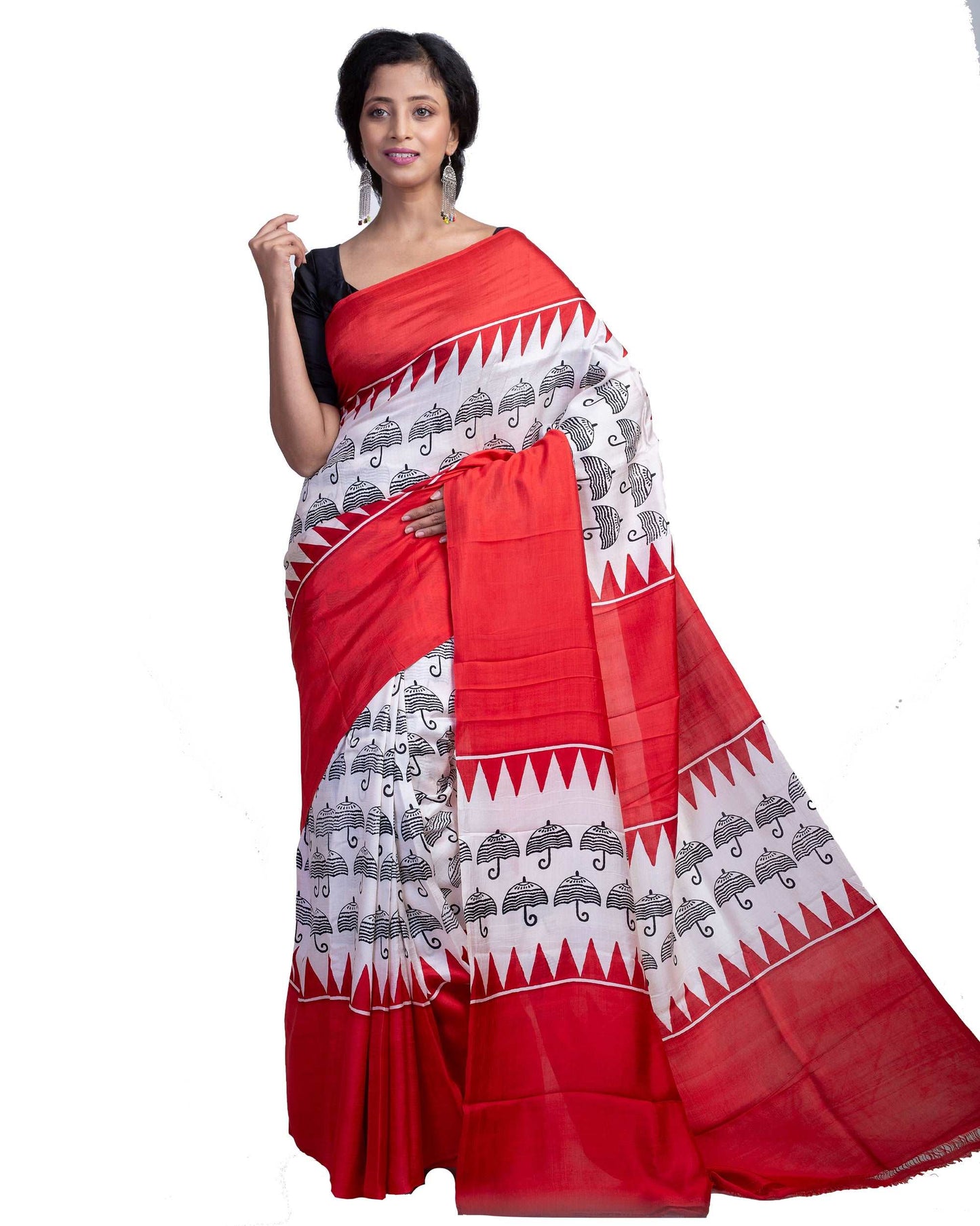 Barsha Block Printed Pure Silk Mark Certified Bishnupuri Silk Sarees