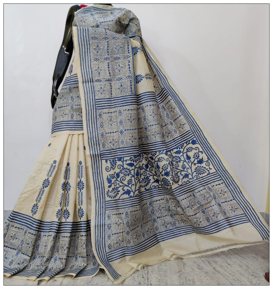 Product Description: Kantha stitch sarees are one of the famous Bengal hand crafted saree. So many artistic skill is seen in the pure silk and tussar silk saree. All design are seen in the saree are fully handwoven which takes 2 week to two month to make the saree. In some saree you can find hand painting and then kantha stitch on it. This Dailybuyys Kantha stitch tussar silk saree is really excellent and beautiful.