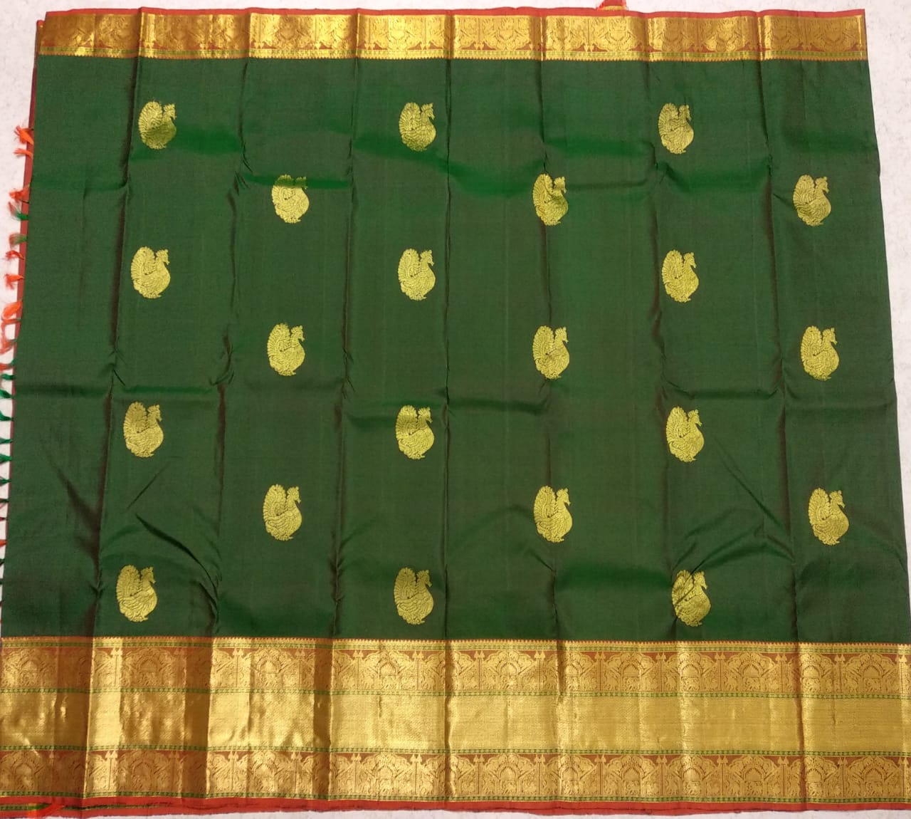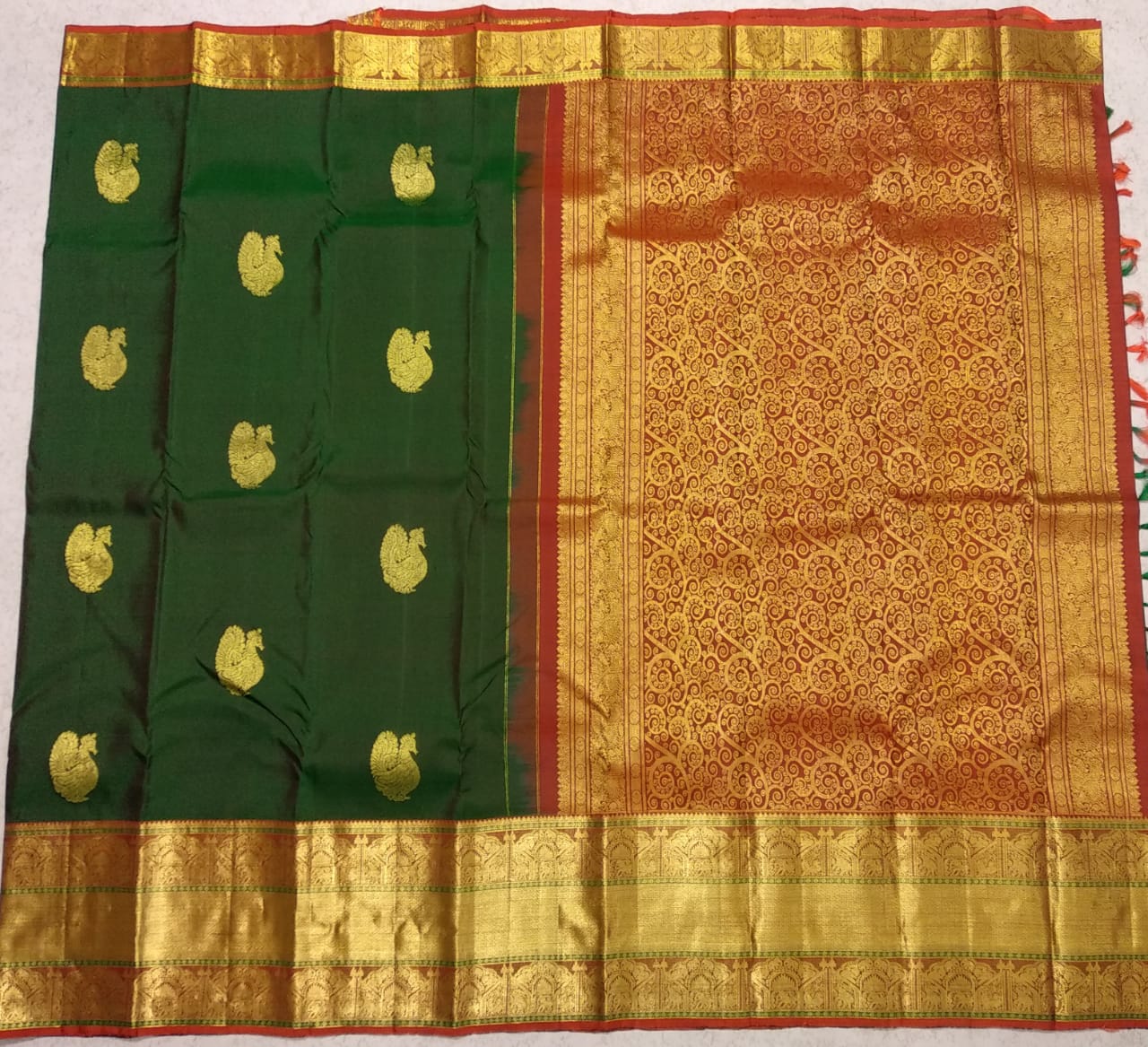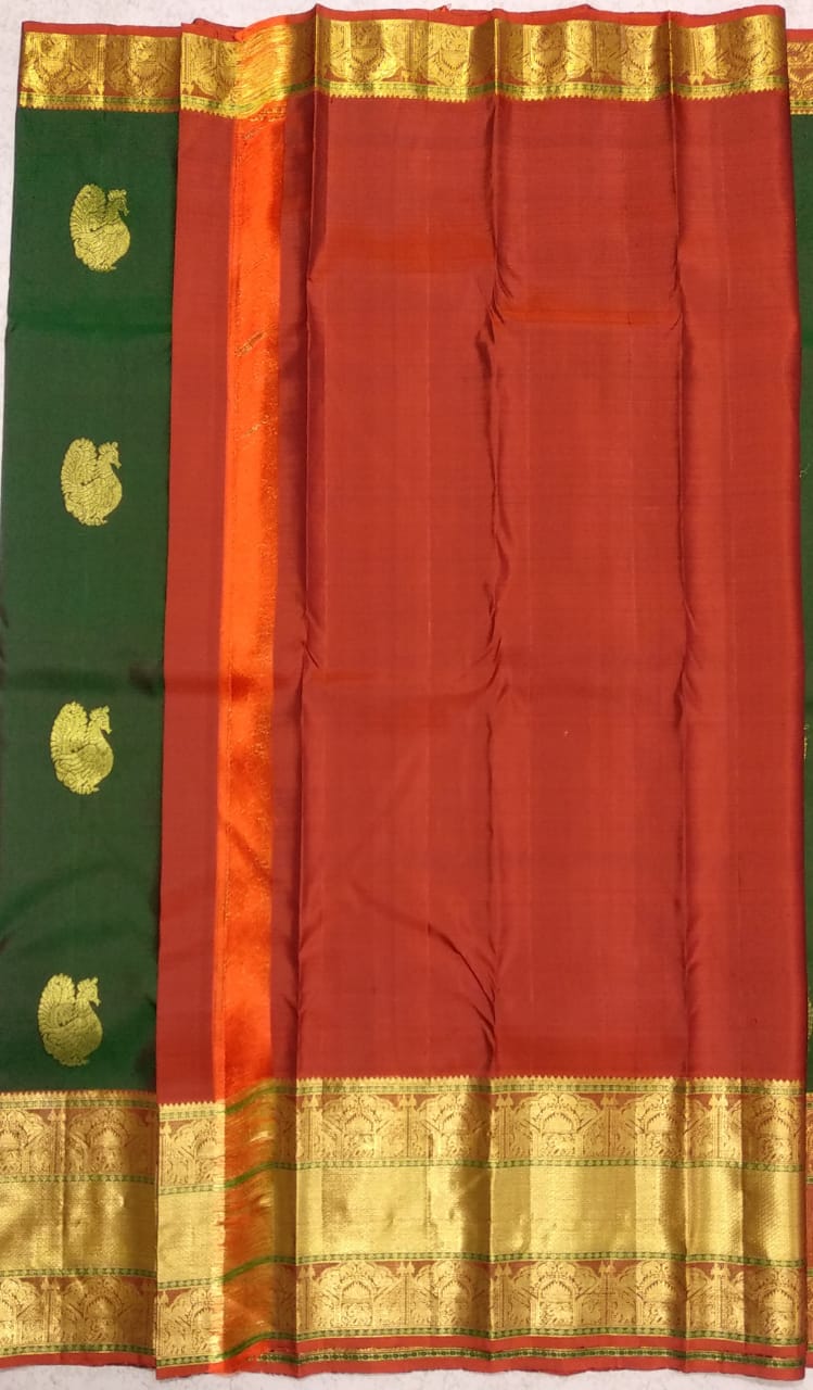 Dark Green And Orange Pallu Pure Handwoven Kanjivaram Silk Sarees