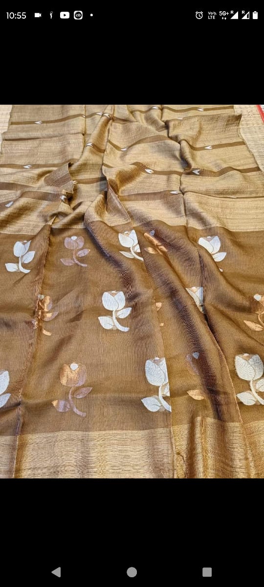Golden Brown Embroidered Matka Silk Mark Certified Muslin Sarees
