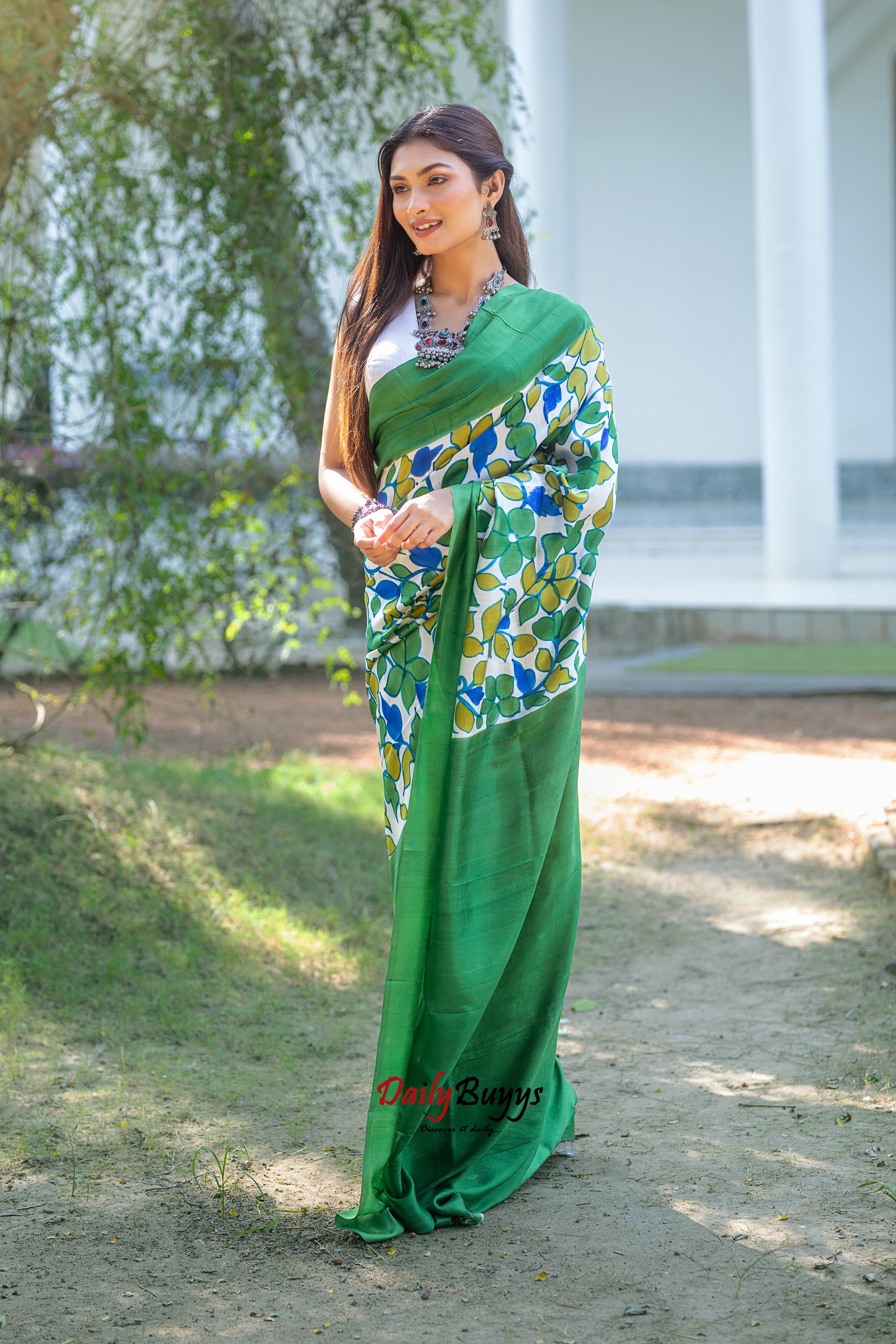 Green Floral Hand Painted Silk Mark Certified Bishnupuri Silk Sarees