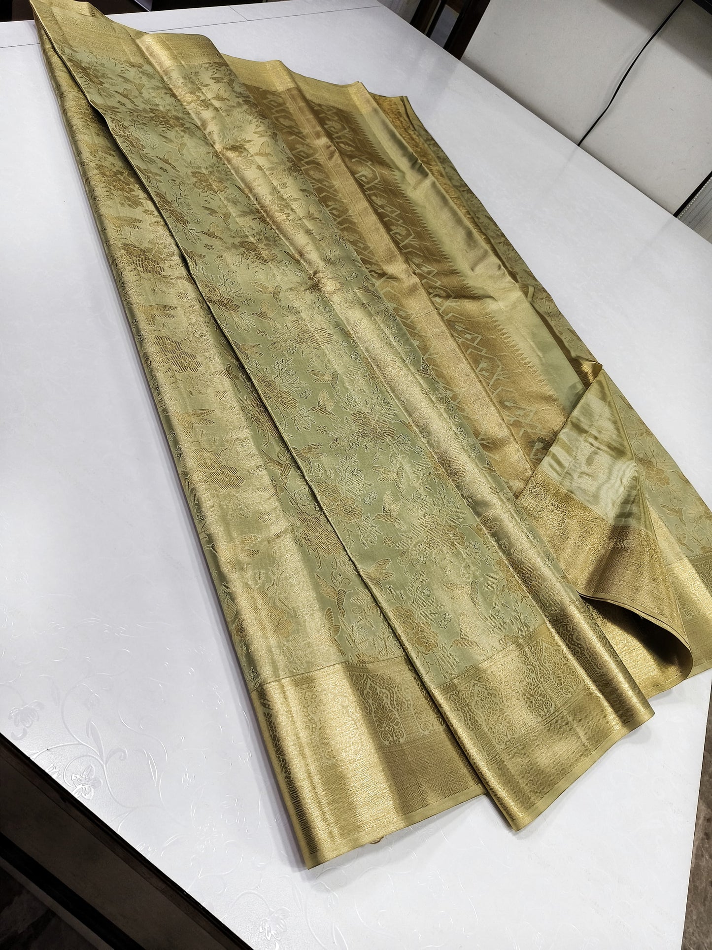 Lime Green Pure Handloom bridal Kanjivaram Silk Sarees