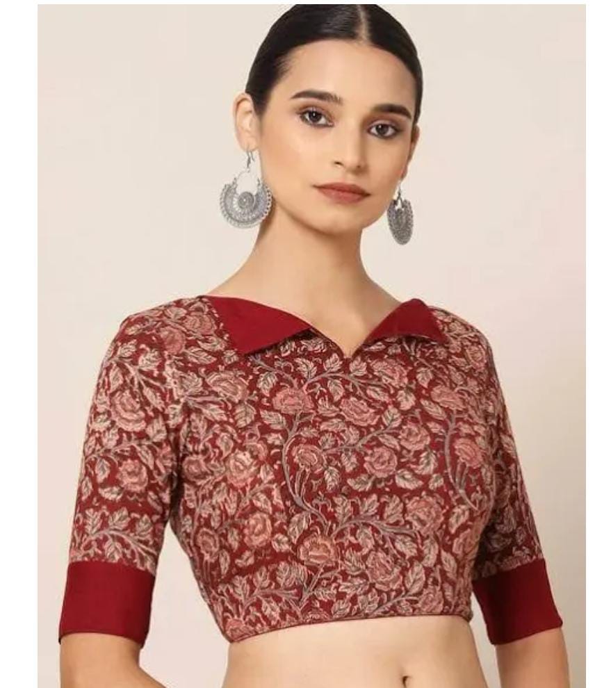 Maroon Boat Neck Collared Blouses(Add to Cart 15% Off)