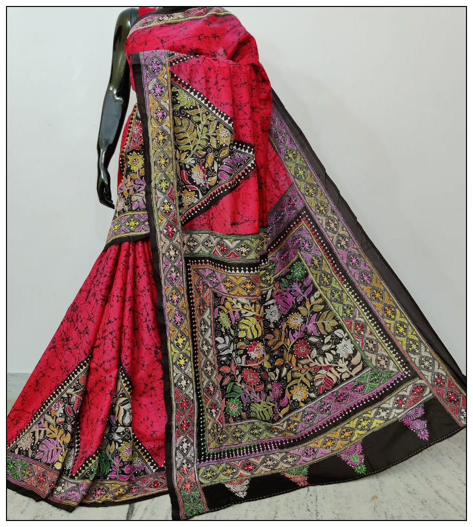 Multi Colored Hand Embroidery Kantha Stitch Saree