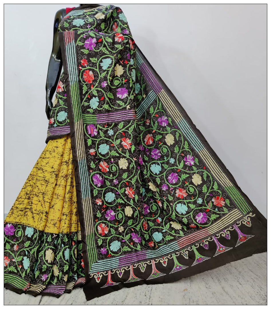 Multi Colored Hand Embroidery Kantha Stitch Saree