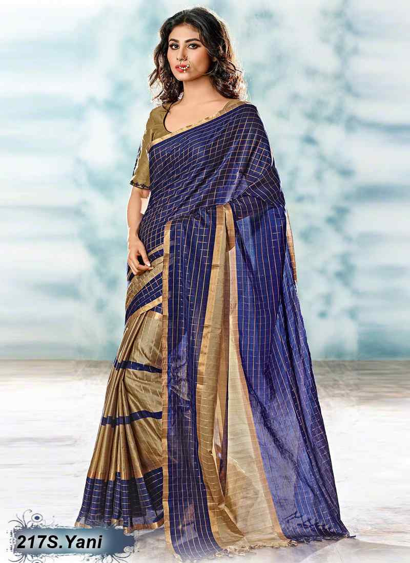 Navy Blue & Beige Modal Pure Cotton Gota Sarees