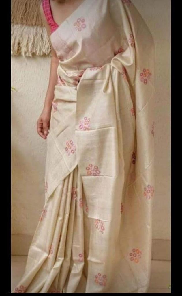 Description: Pure Handloom Zari Border Tussar Silk Saree (Silk Mark Certified)