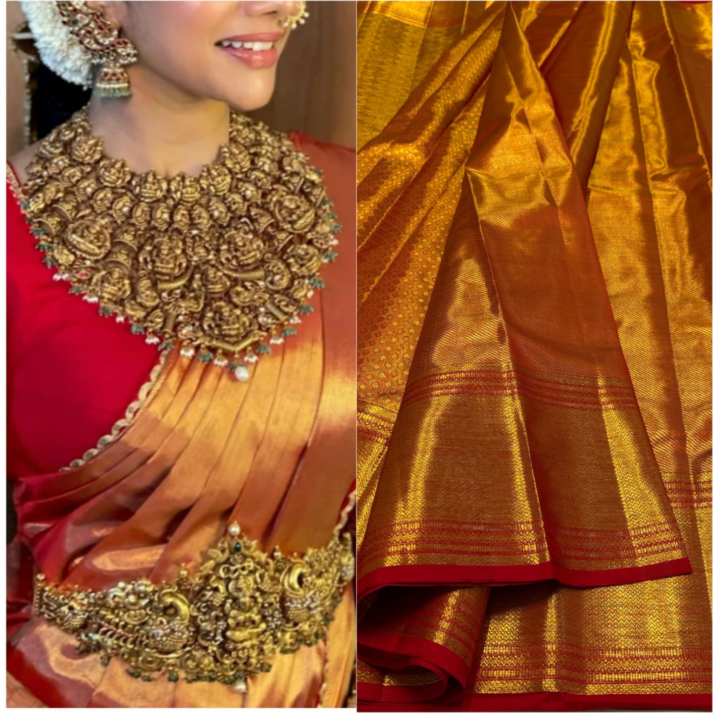 Orange Pure Handloom Kanjivaram Silk Sarees