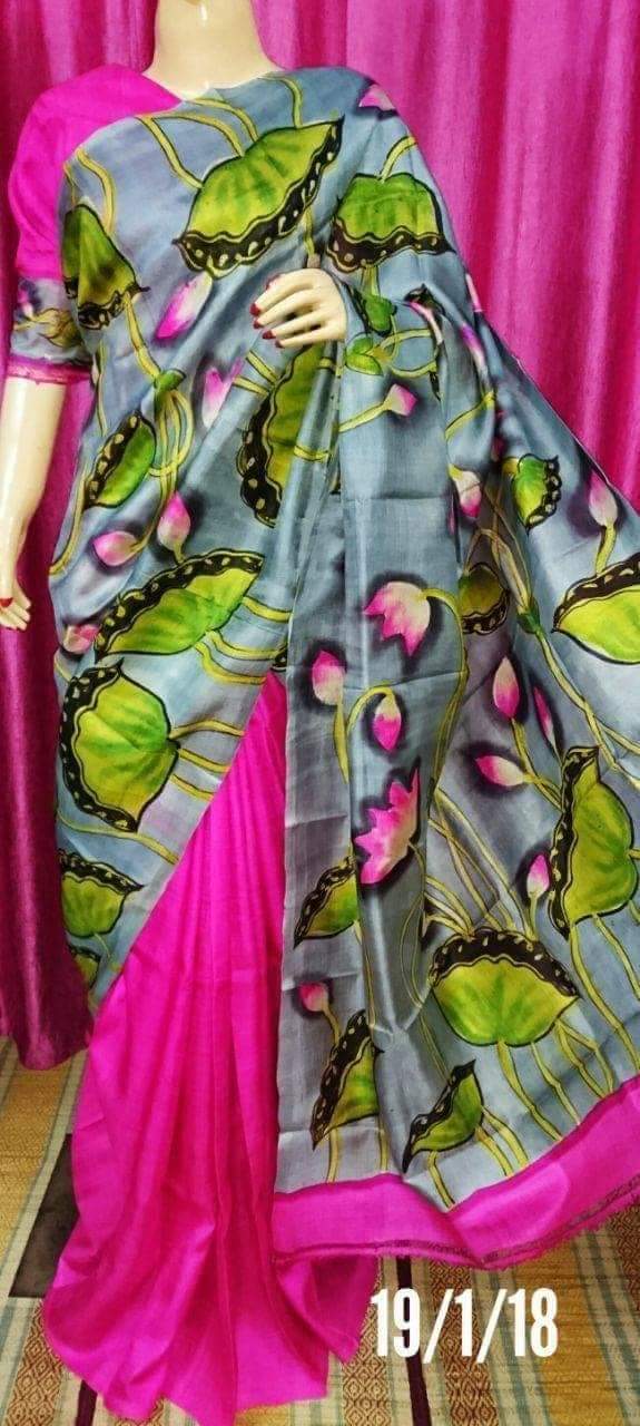 Product Description: The beauty of this Bishnupuri silk sarees renowned for its superior quality, elegant look & contrasting shades. This hand-painted saree is a rare combination of culture & tradition mix with modernity.