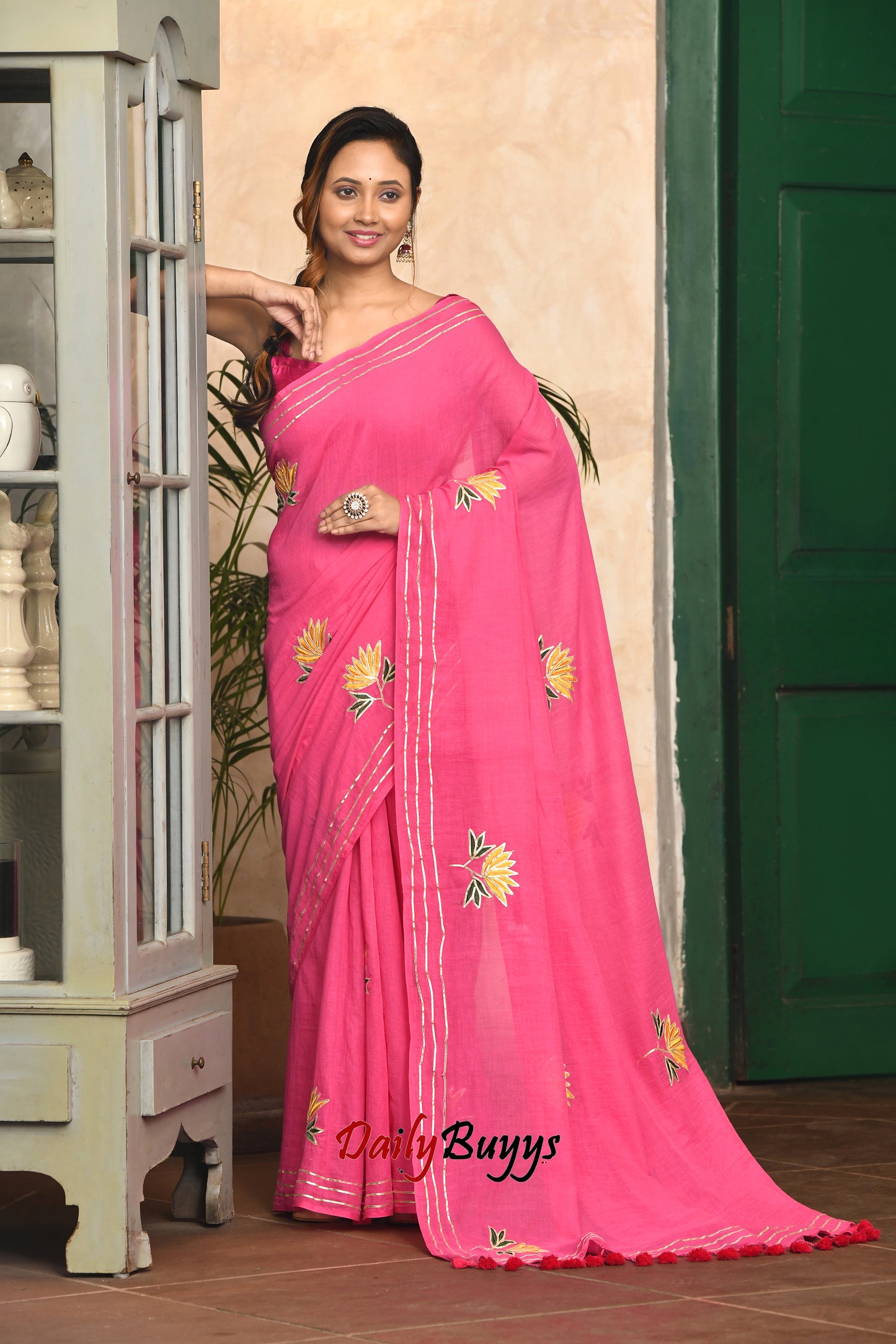 Dailybuyys Pure cotton silk saree is a soft and staple cotton fiber that grows in a boll, it is the protective case around the seeds of the cotton plants. Cotton sarees are suitable for everyday wear as well as for a party with a beautiful blouse with cotton saree. Dailybuyys Pure cotton saree is so versatile that they can be tweaked to look simple as well as to replicate a runway look when paired with a piece of beautiful jewellery. The texture of a pure cotton saree is often soft and papery provided with beautiful bright colors.