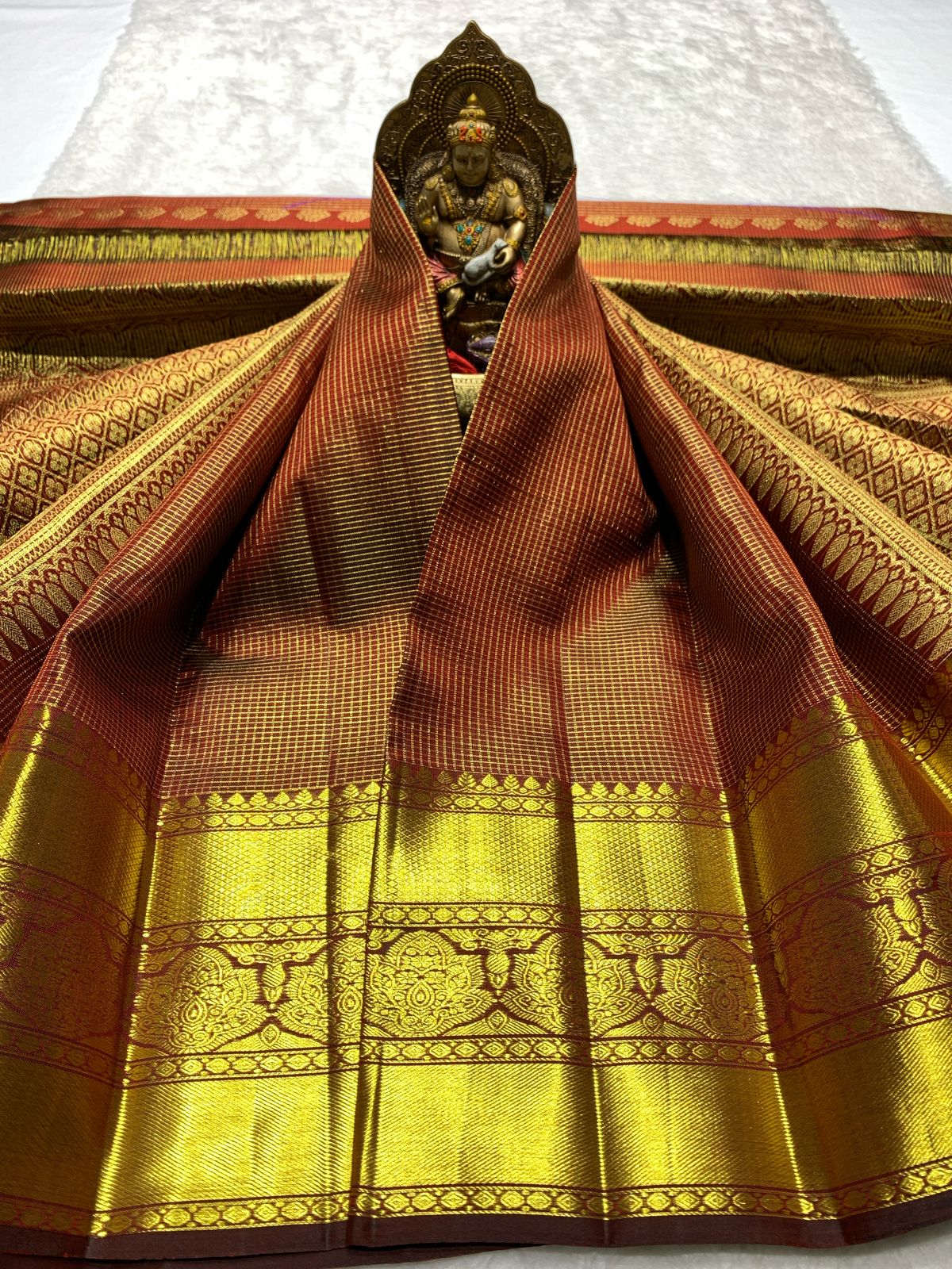 Work : Kanchipuram Silk Sarees With Golden Zari Border