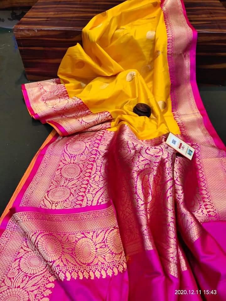 Yellow & Rani Pink Katan Banarasi Silk Sarees